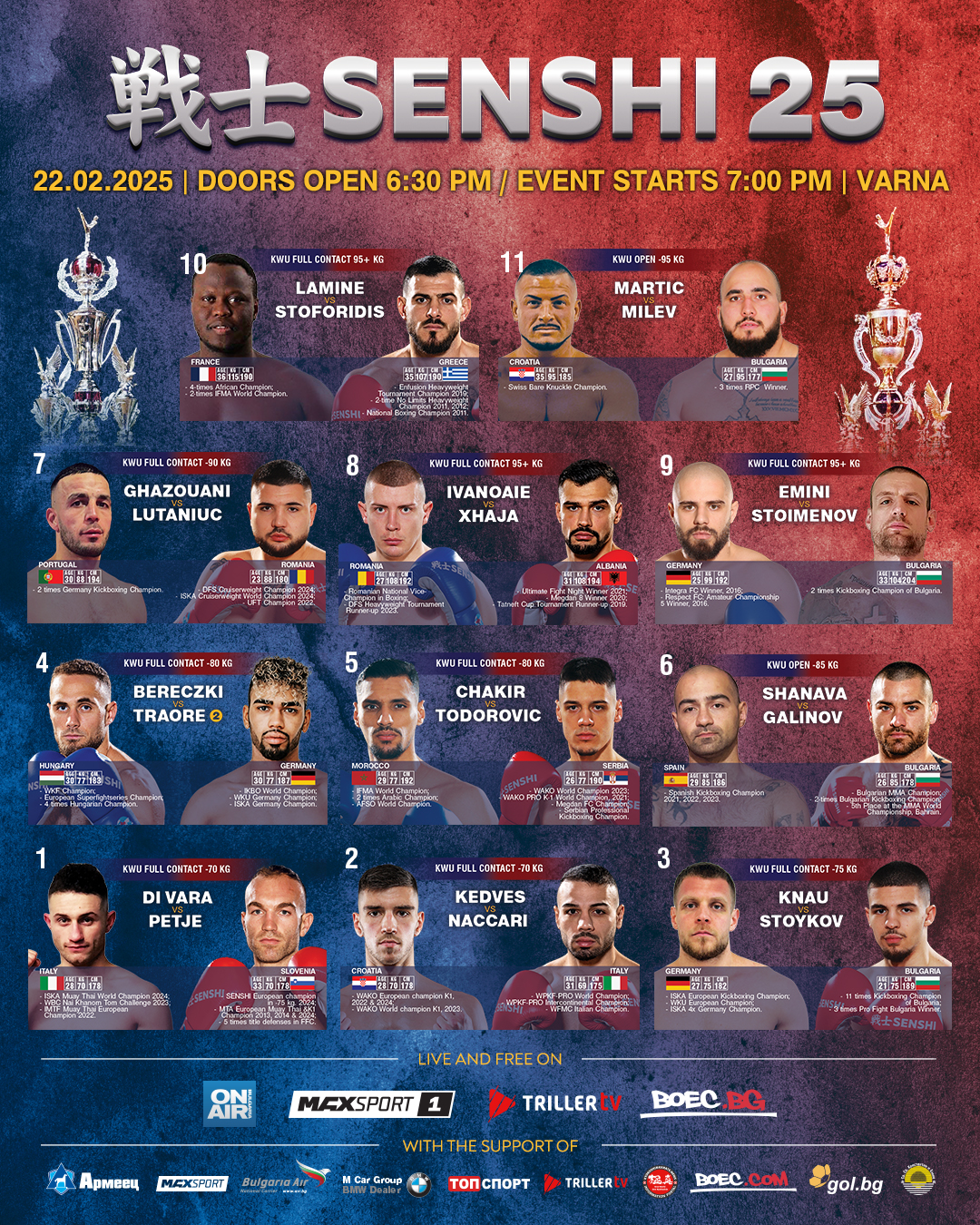 The SENSHI 25 Fight Gala Night will offer the audience 11 fights featuring professional fighters from 14 countries. The 25th edition of the promotion will take place on February 22 at the Palace of Culture and Sports in Varna, Bulgaria, and promises high-impact clashes, setting a high level for combat sports at the beginning of the year. The action will start at 7:00 pm EET /12:00 am EST/.文章源自武享吧-https://hula8.net/boji/75058.html