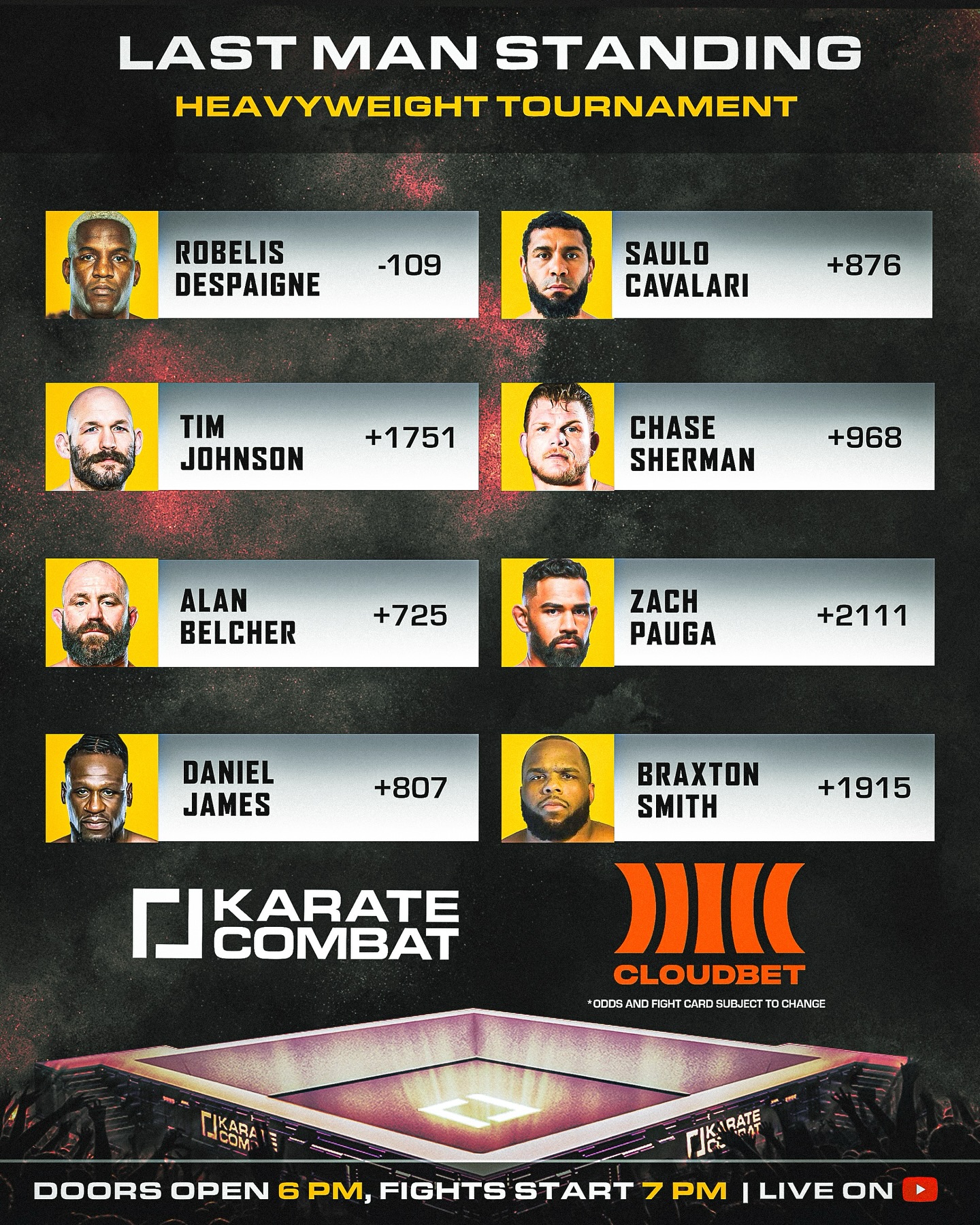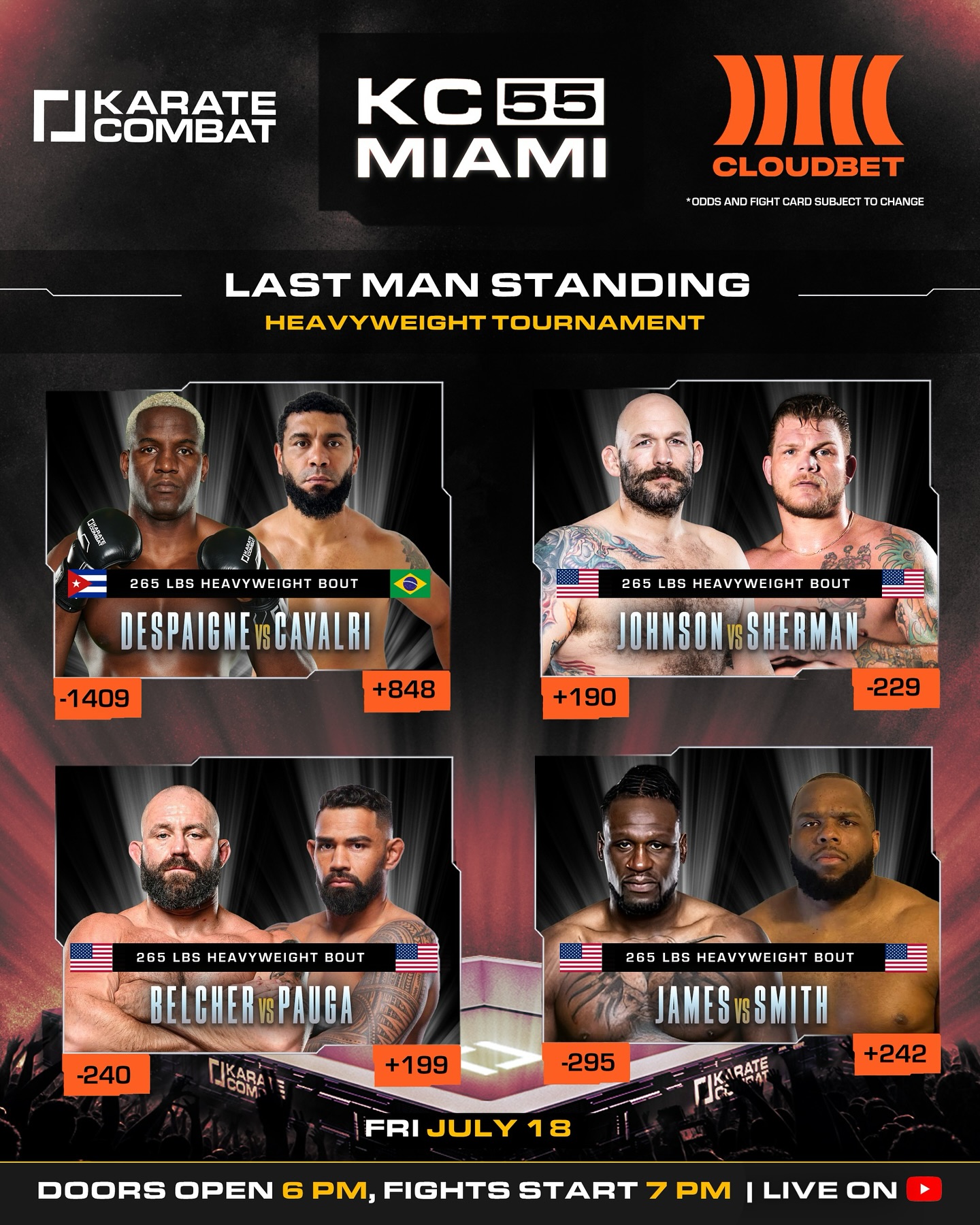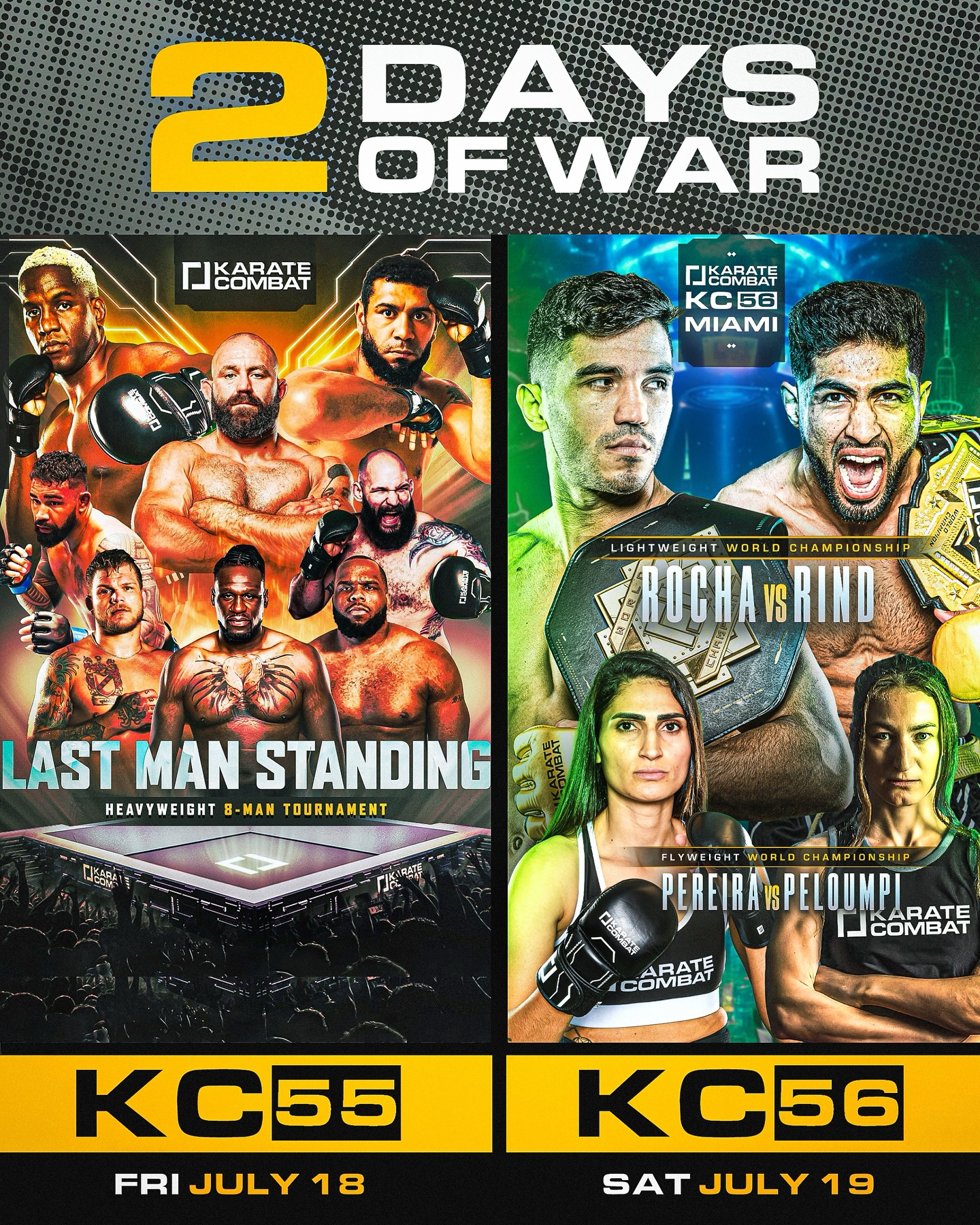 Karate Combat storms Miami’s Mana Wynwood with a back‑to‑back showcase. KC 55 – Fri, July 18 (7 p.m. ET) launches the eight‑man “Last Man Standing” heavyweight tourney: Cuban KO titan Rob “Ellis” Despaigne squares off with Saulo Cavalari, Tim Johnson, Chase Sherman, Alan Belcher, Zac Pauga, Daniel James and Braxton Smith—three wins in one night earns a crack at champ Sam Alvey. KC 56 – Sat, July 19 (5 p.m. ET) features two titles: lightweight king Shahzaib Rind vs Luiz Rocha and Aline Pereira vs Fani Peloumpi for the vacant women’s flyweight belt. MMA crossovers add bite with Lorenz Larkin‑Randall Wallace, Luan Santiago‑Zach Juusola, and Ilyas Khamzin‑Alex “Cowboy” Oliveira.文章源自武享吧-https://hula8.net/boji/75870.html