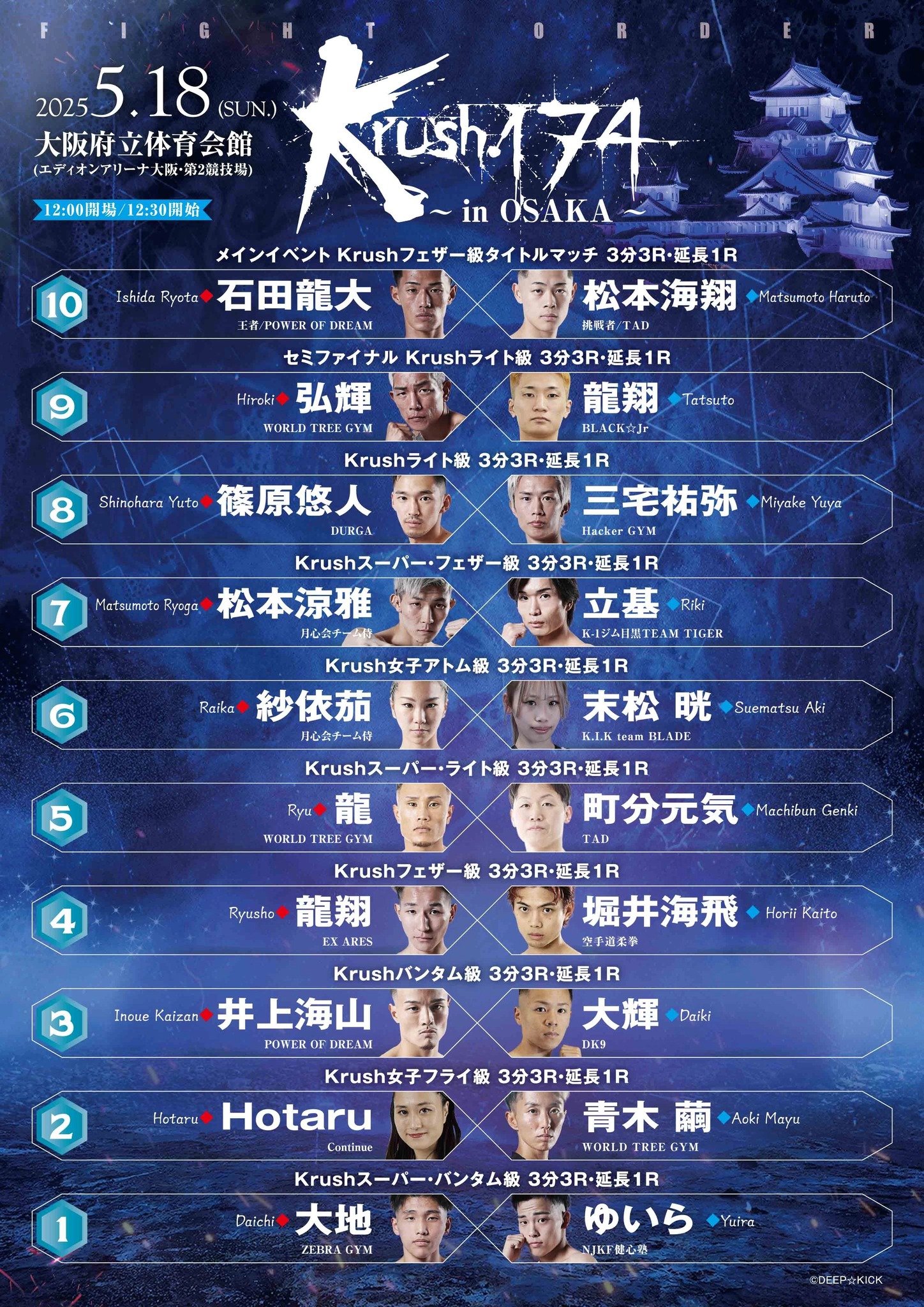 「Krush.174 ~in OSAKA~」5.18(日)大阪 全10カードの大阪府立体育館第2競技場)大会.