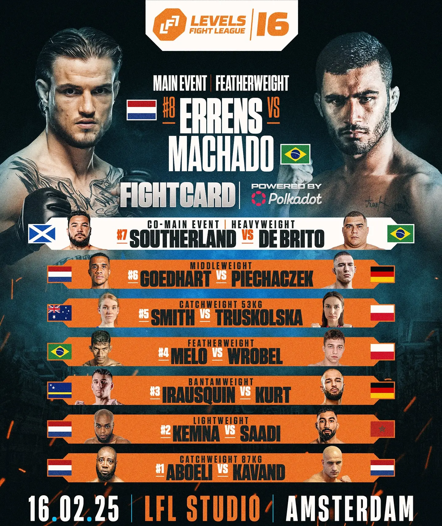 当地时间2025年2月16日LFL 16见证 Jarno Errens 的回归、一场重量级对决以及欧洲顶级 MMA 新秀的崛起!