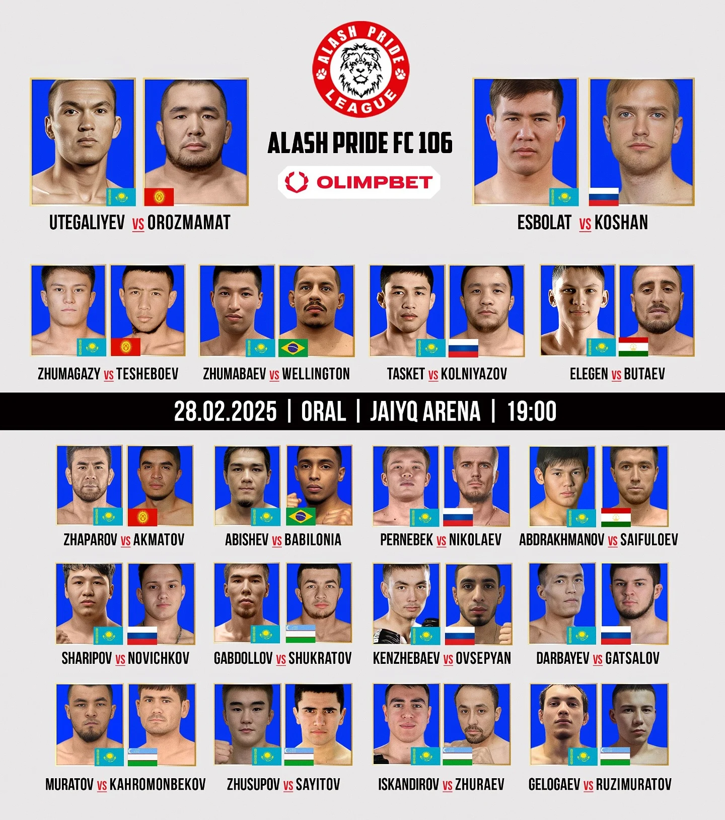 28 ақпанда Орал қаласында Alash Pride 106 турнирі өтеді.文章源自武享吧-https://hula8.net/mma/75092.html