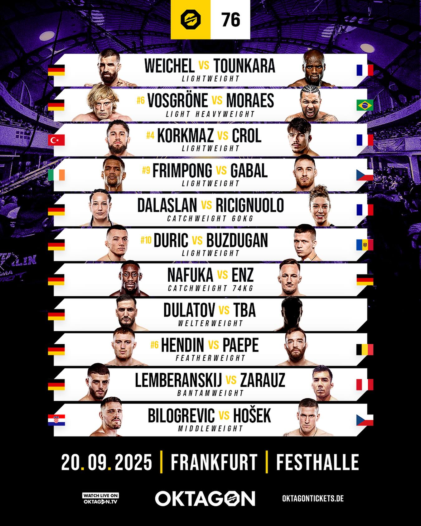 FRANKFURT FIGHT LIST IS HERE!!!