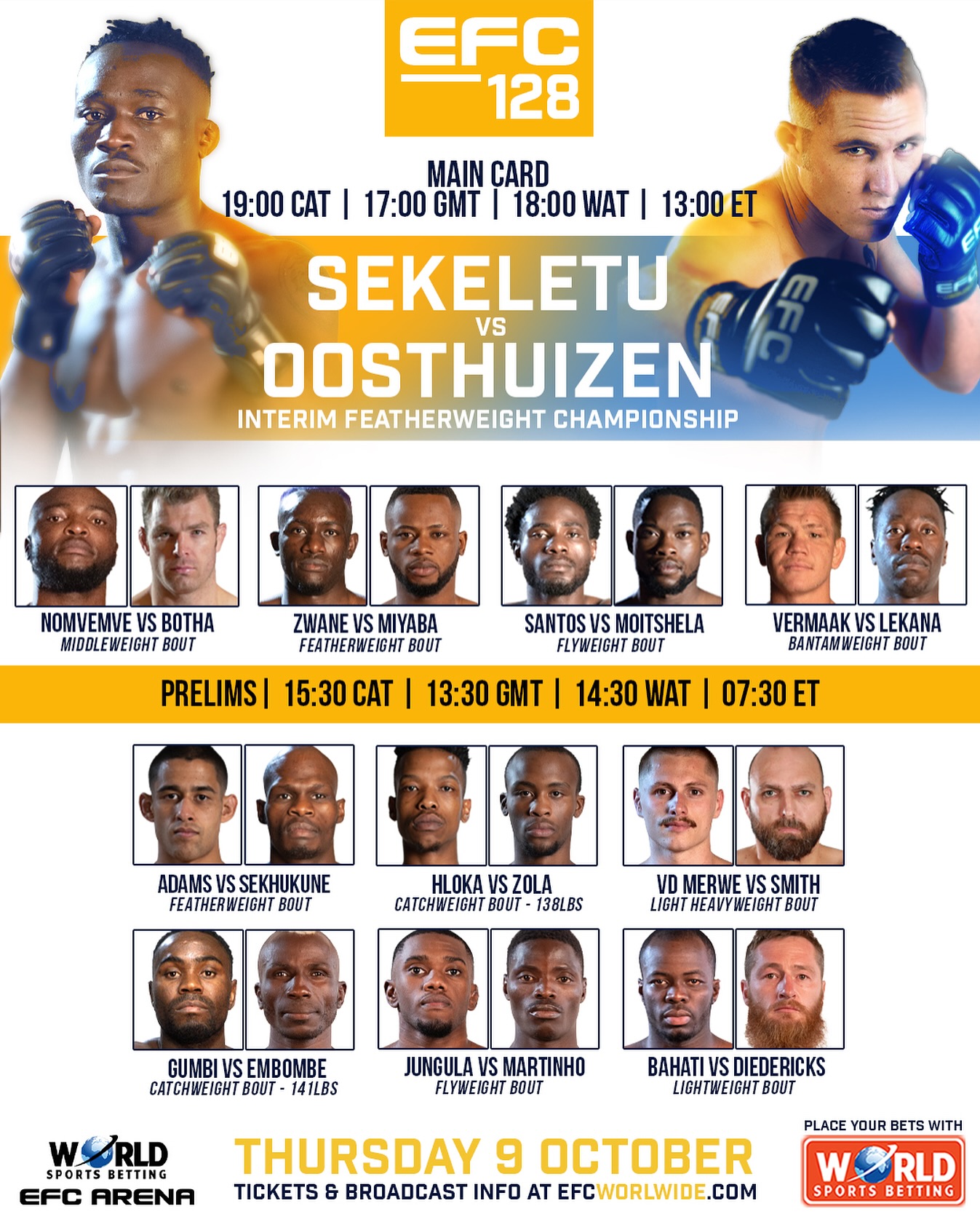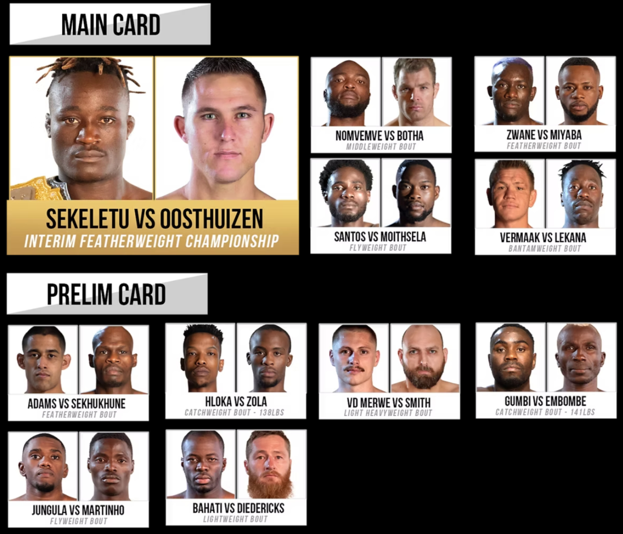 Six additional preliminary bouts round out a colossal night of unmissable African MMA action.
