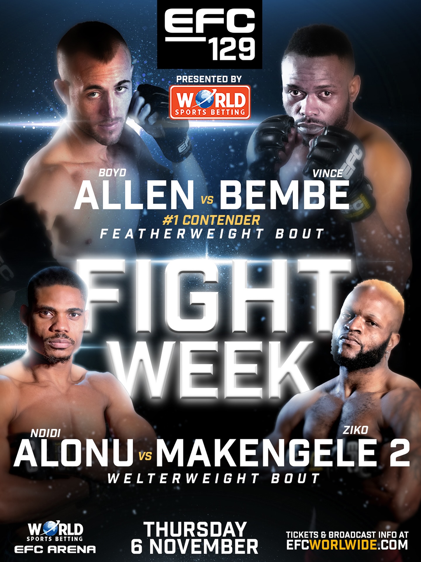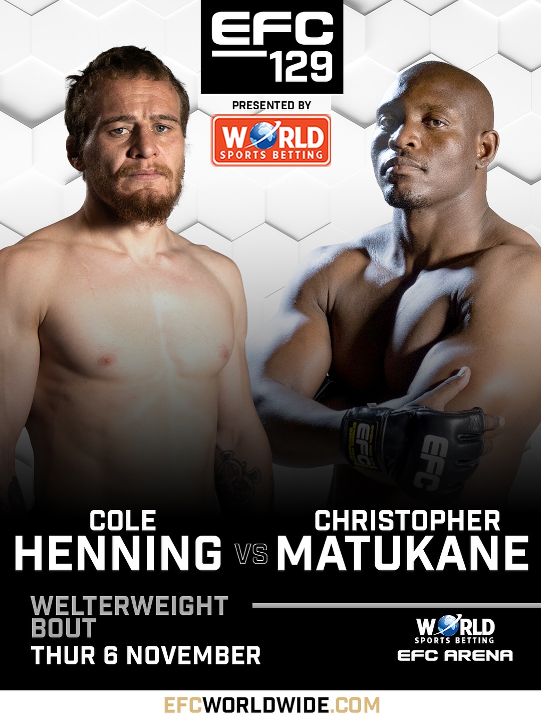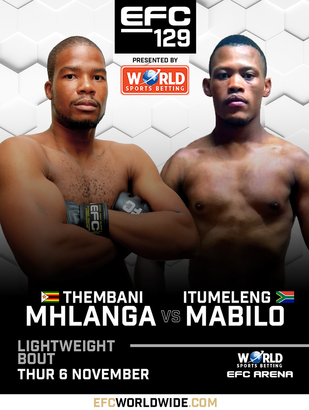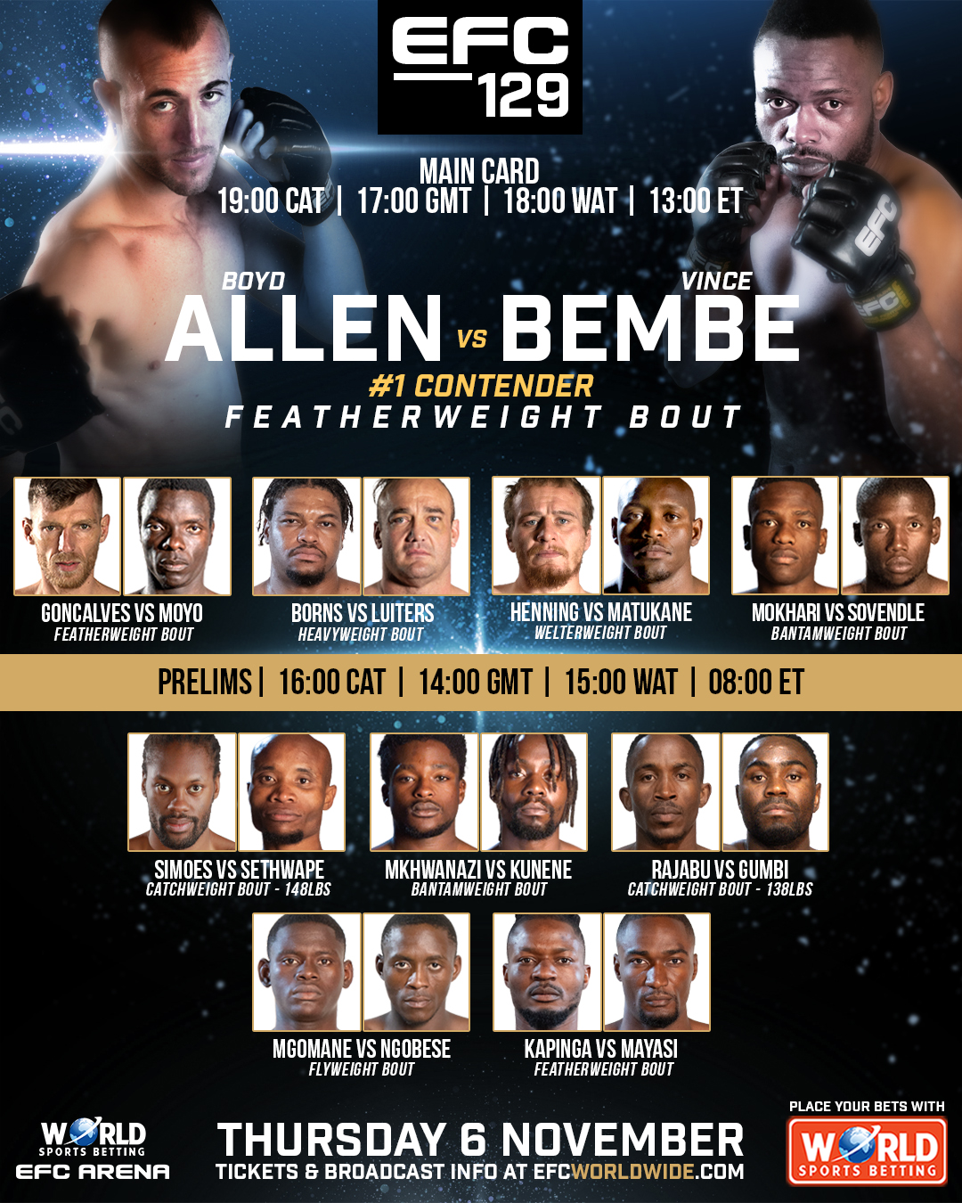 for Thursday’s EFC 129 event at the World Sports Betting Arena in Johannesburg, two