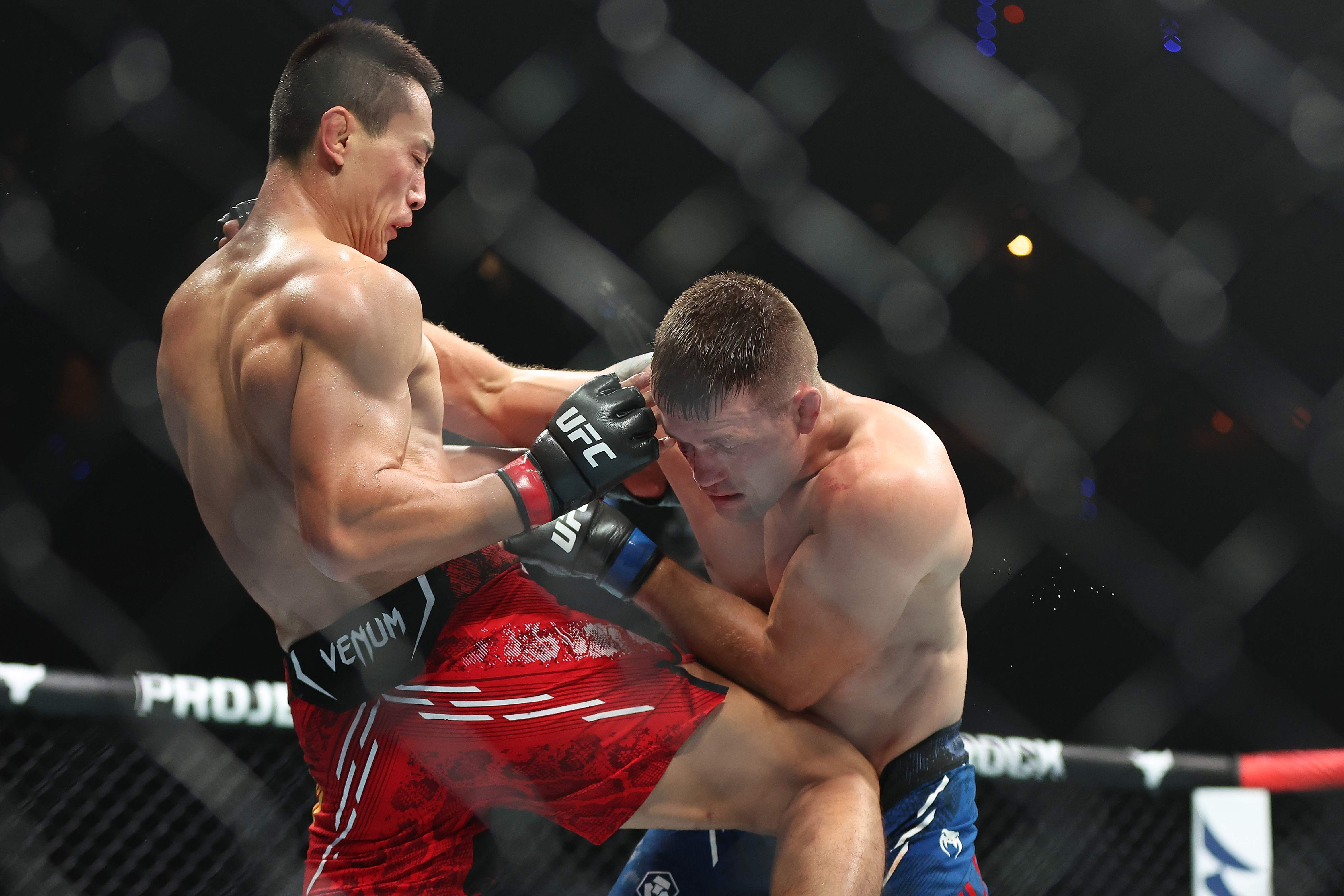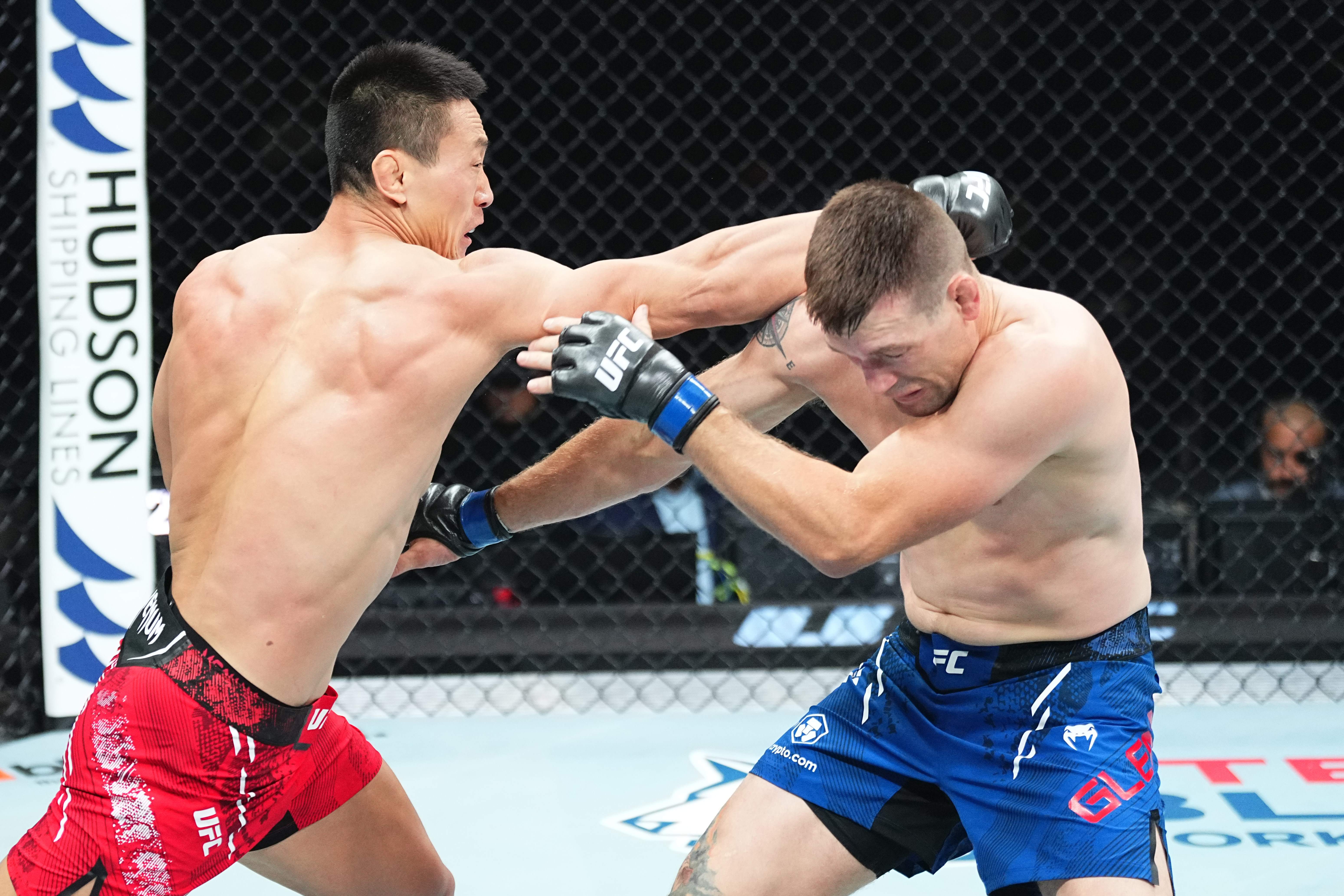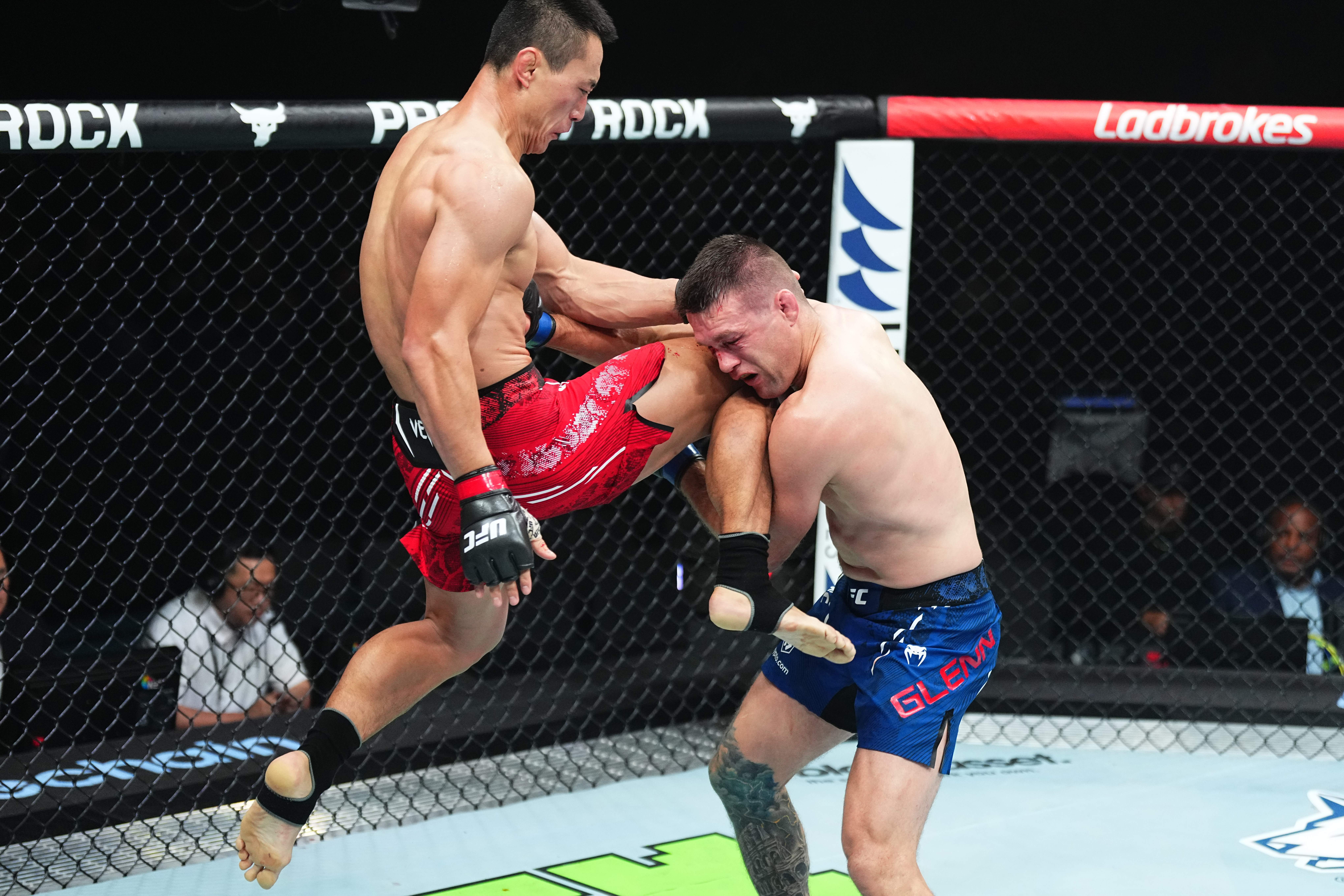 第三回合,宋克南延续优势,他初期在笼边的击打险些终结对手。此外,宋克南还在这个回合里几次尝试膝击,但没有实质性的命中。格伦在这5分钟里的表现要比之前好上一些,但依然吃到不少击打。4分半时,比赛由于宋克南戳中了对手的眼睛而被中断,但格伦也已无法逆转结果。最终,宋克南以30-27, 30-26, 29-28的点数一致判定赢得了胜利。文章源自武享吧-https://hula8.net/other/73321.html