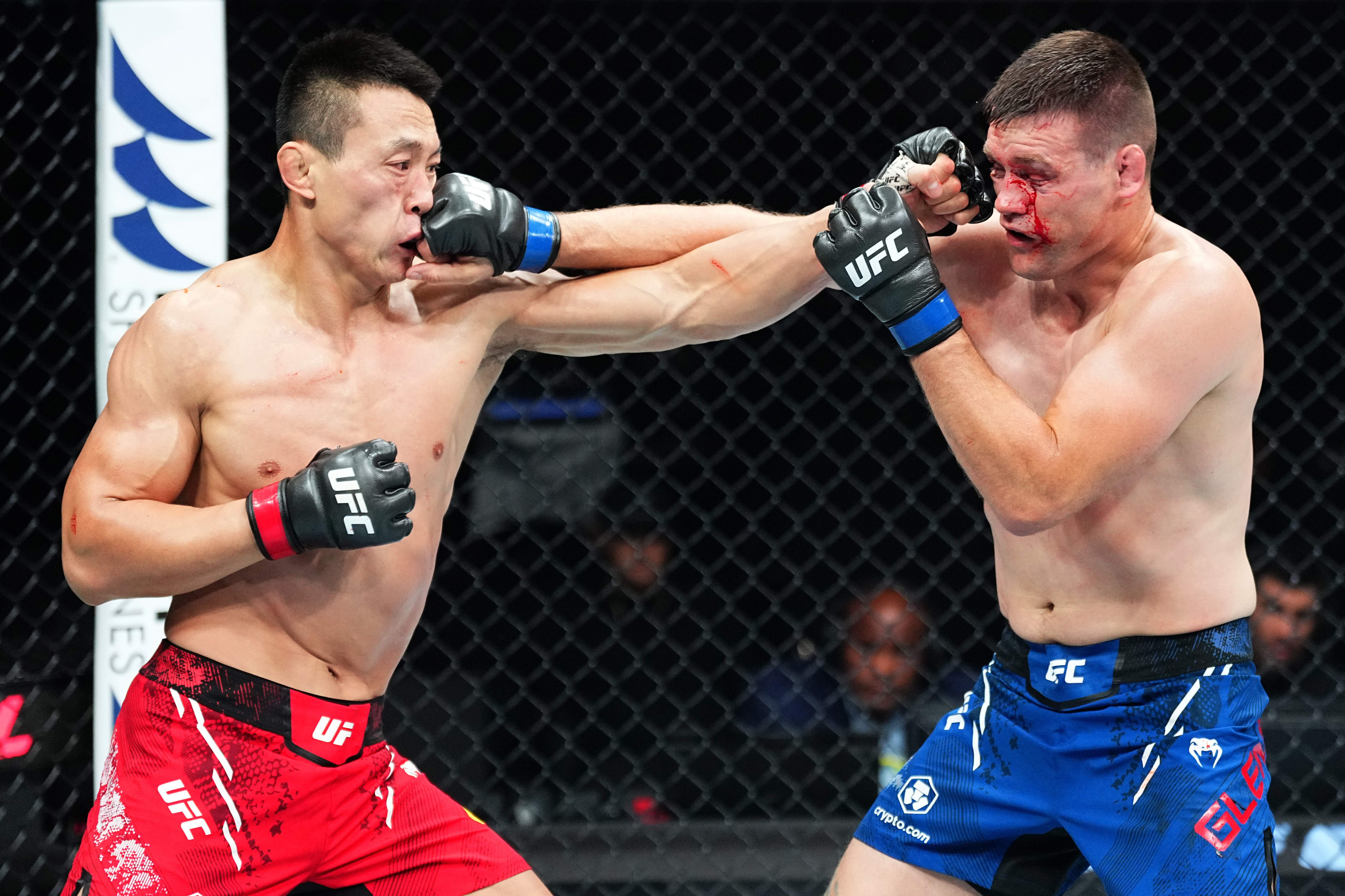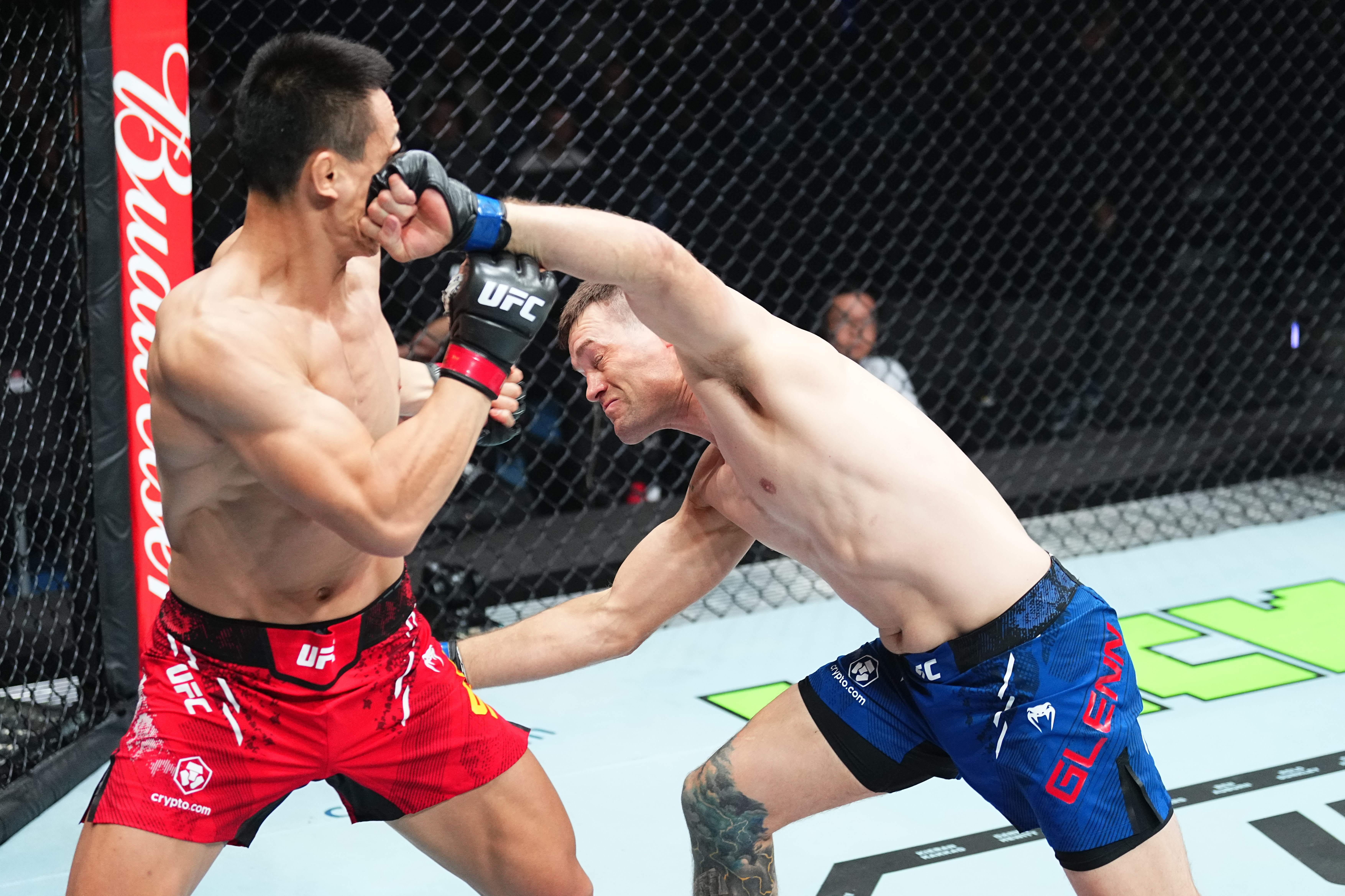 第一回合,格伦开场就重拳击倒了宋克南,但后者很快就回到了站立。不过格伦一直控制着他的后背,两人展开了一段近身缠斗。回合中段,宋克南摆脱控制展开进攻,在站立打击方面优势非常明显,多次命中格伦。格伦再次近身并摔倒了宋克南,随后近身控制,防止对手继续出拳。文章源自武享吧-https://hula8.net/other/73321.html