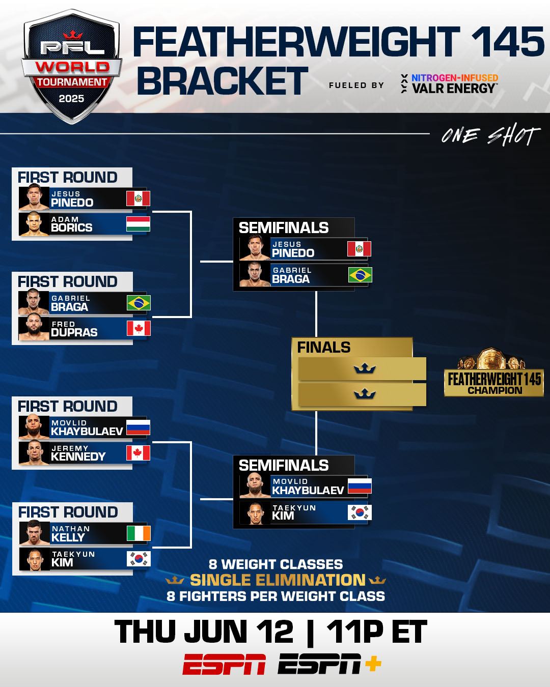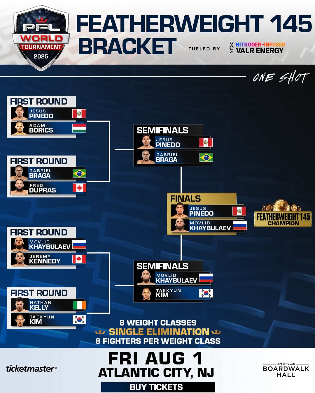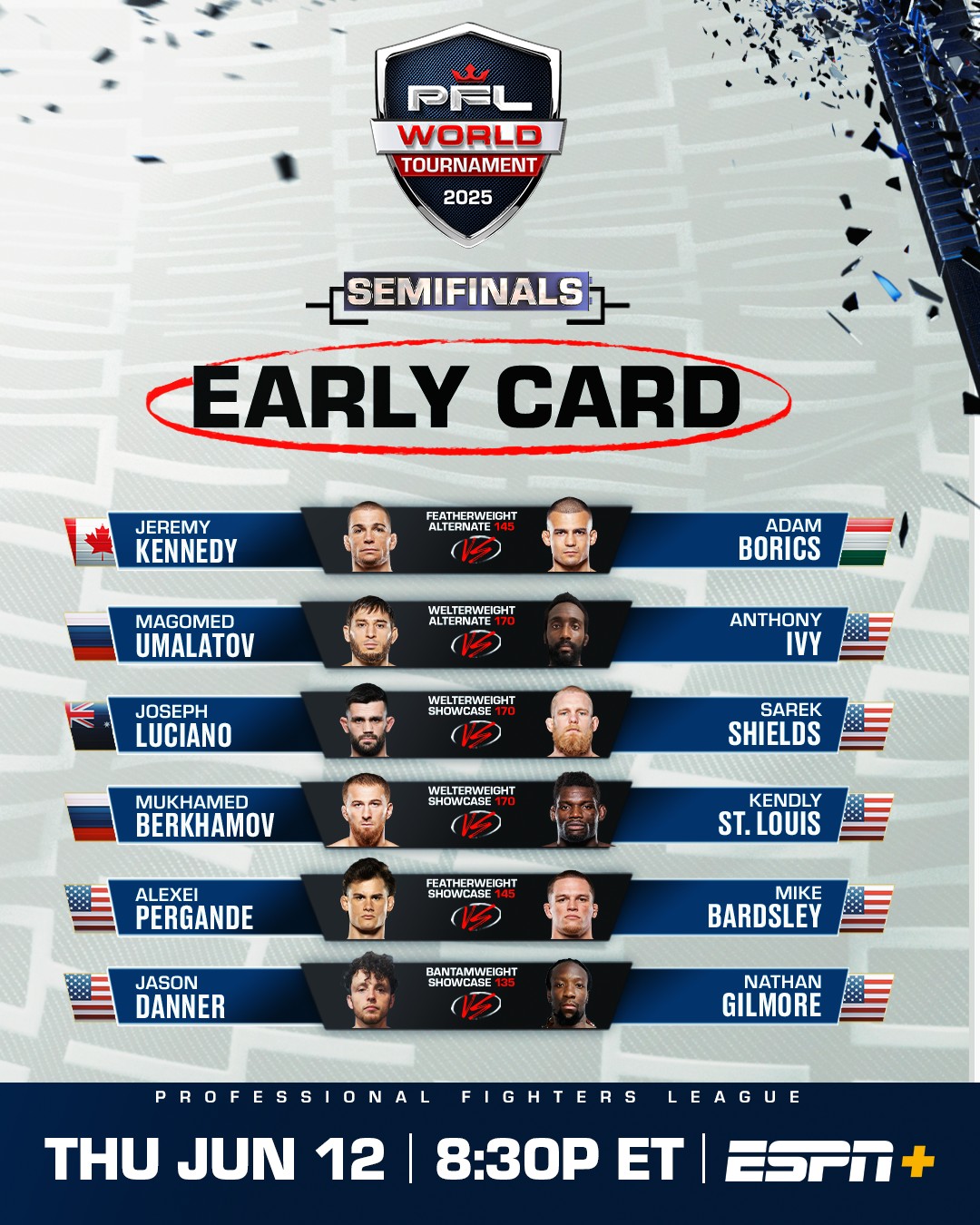 The main card event will be feature the semifinals of 2025 PFL World Tournament in a welterweight and featherweight divisions..