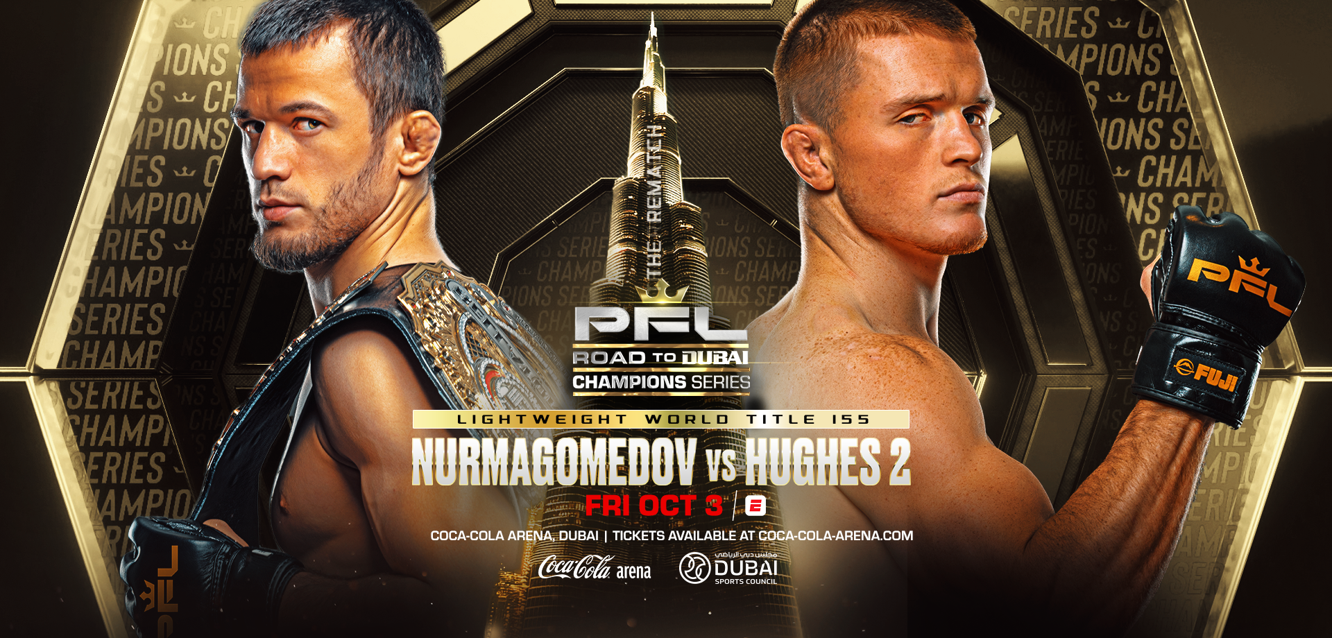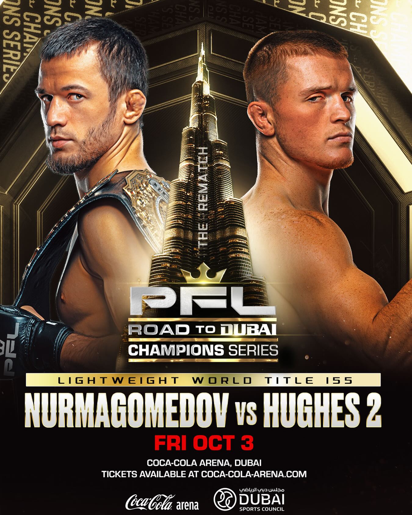 PFL Champions Series 3: Nurmagomedov vs. Hughes 2 is an upcoming mixed martial arts event produced by the Professional Fighters League that will take place on October 3, 2025, at Coca-Cola Arena in Dubai, United Arab Emirates.文章源自武享吧-https://hula8.net/pfl/75958.html