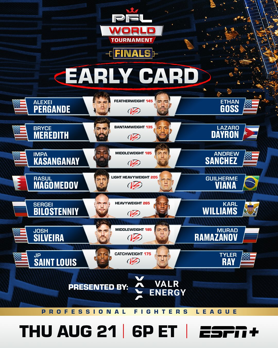 The event will be feature the final of 2025 PFL World Tournament in the middleweight, light heavyweight and heavyweight divisions.