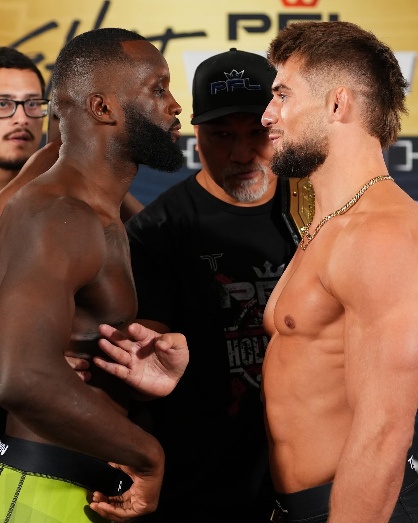 A pair of showcase bouts round out the Main Card as undefeated Alexei Pregande (6-0) faces Ethan Goss (12-7) at Featherweight and unbeaten Bryce Meredith (7-0) meets equally unbeaten Lazaro Dayron (8-0-1) at Bantamweight. Closing out the Early Card, the 2025 PFL World Tournament Heavyweight Champion will be decided when Moldova’s Alexandr Romanov (19-3, 1 NC) squares up against Russia’s Oleg Popov (21-2).