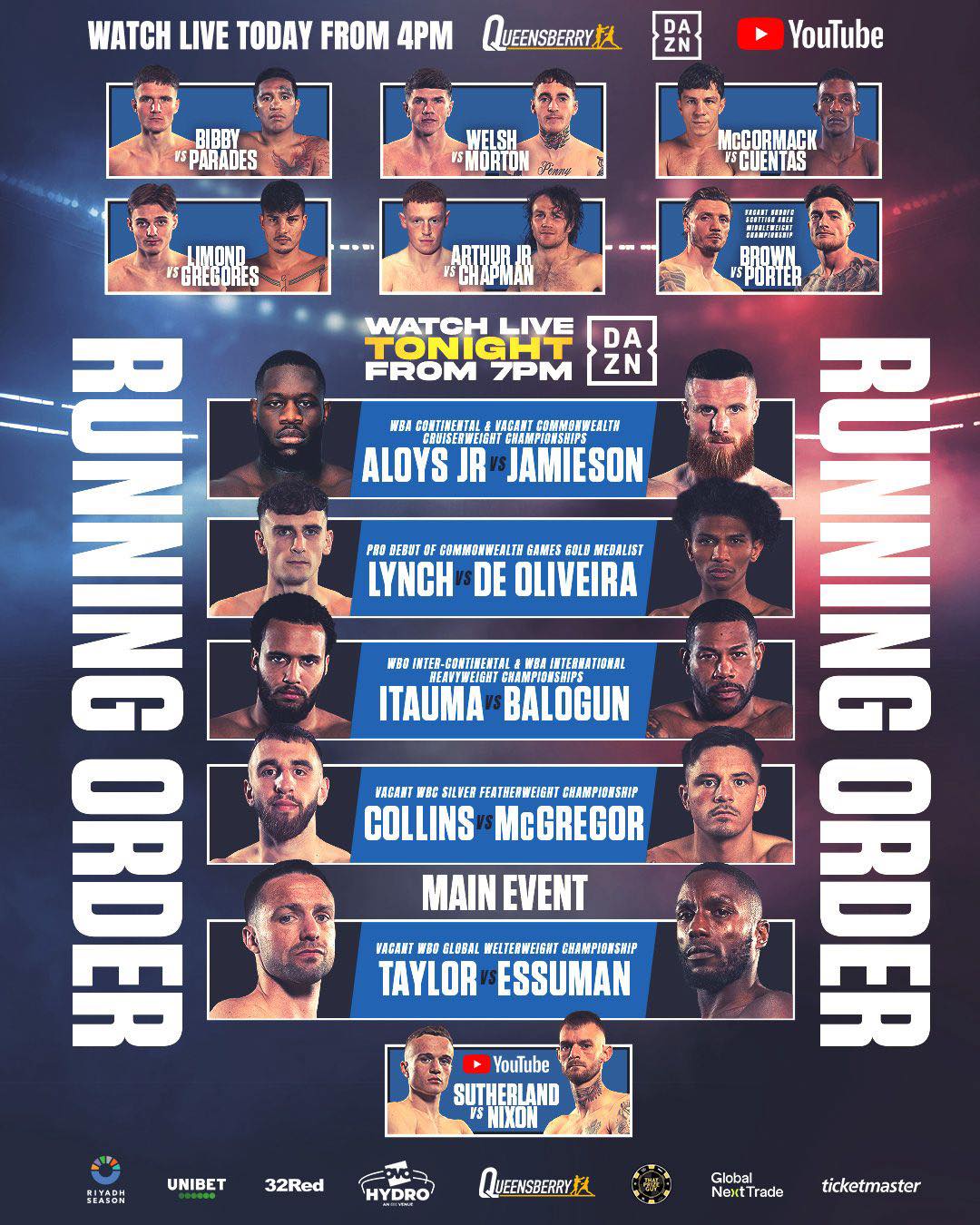 北京时间5月25日凌晨,前WBC/WBA超级/IBF/WBO超轻量级拳王英国人乔什-泰勒(19-2,13KO)和英国同胞埃科-埃苏曼(21-1,8KO)在英国格拉斯哥,两人将进行一场预定为10个回合的次中量级比赛,两人争夺空缺的WBO次中量级国际拳王。泰勒今天称重146.8磅,对手埃苏曼146.4磅,一次过关。文章源自武享吧-https://hula8.net/quanji/75587.html