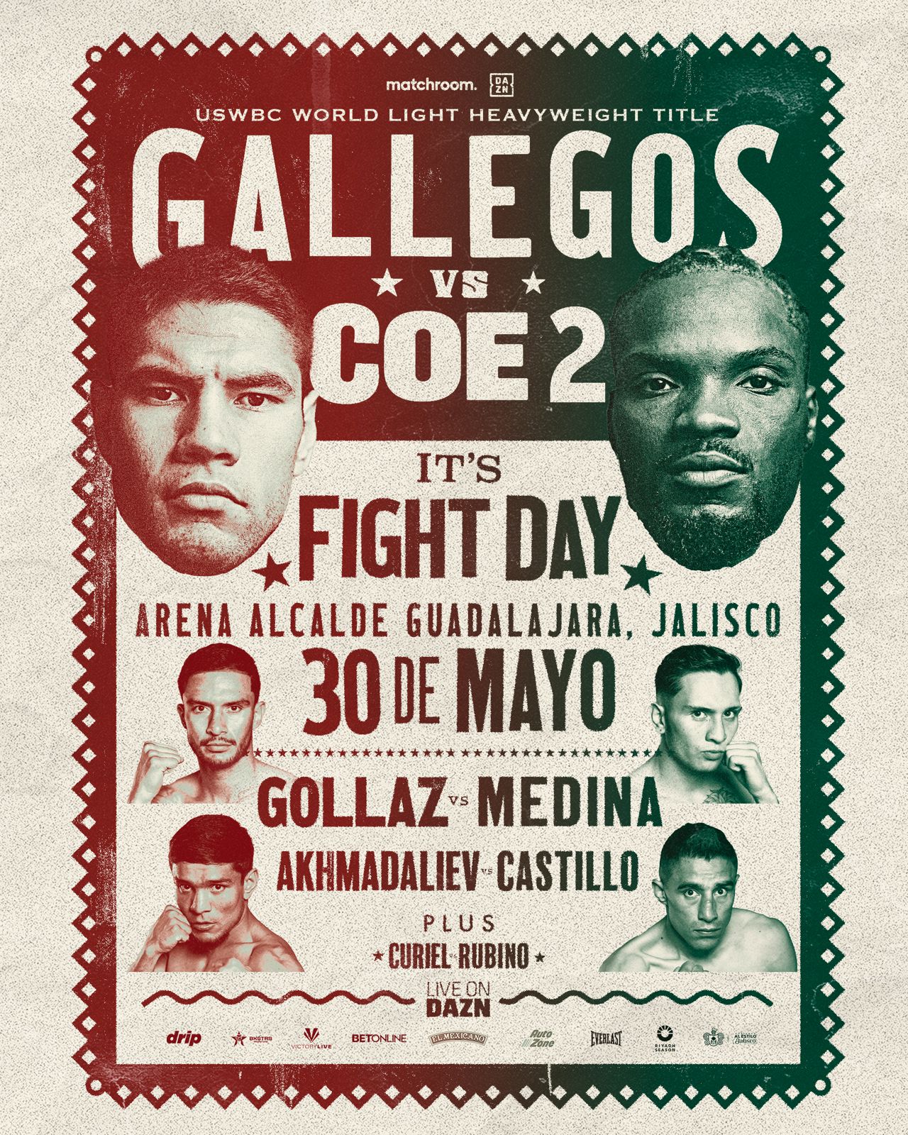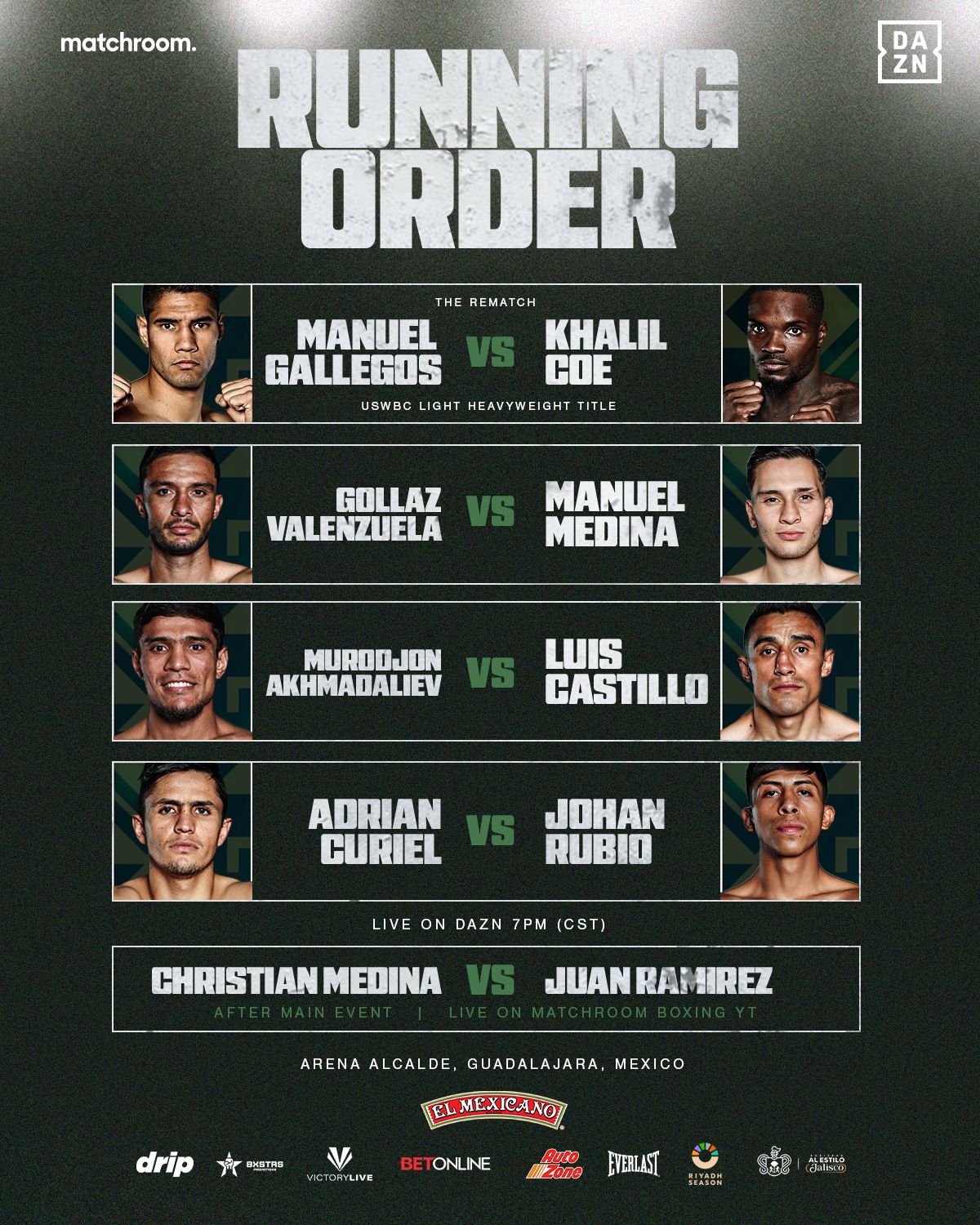 Friday Night Fights Manuel Gallegos & Khalil Coe's rematch headlines in Guadalajara alongside Murodjon Akhmadaliev, Adrian Curiel & Gabriel Gollaz文章源自武享吧-https://hula8.net/quanji/75681.html