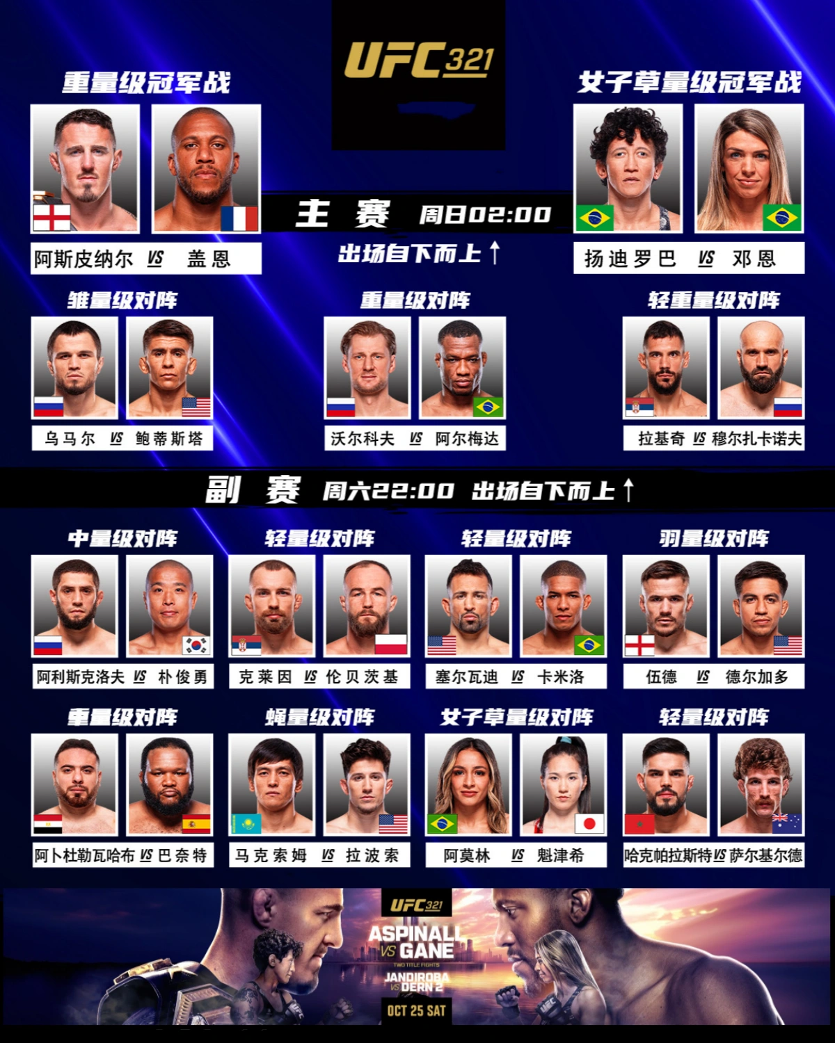 ![2025年10月25日UFC 321 – 直播[赛后视频] Aspinall vs. Gane | Ultimate Fighting Championship-图片2](https://www.ufc.cn/Upload/NewsImage/8d925d94-10d9-455c-8d2d-2f5a77f9d7dd.jpg)