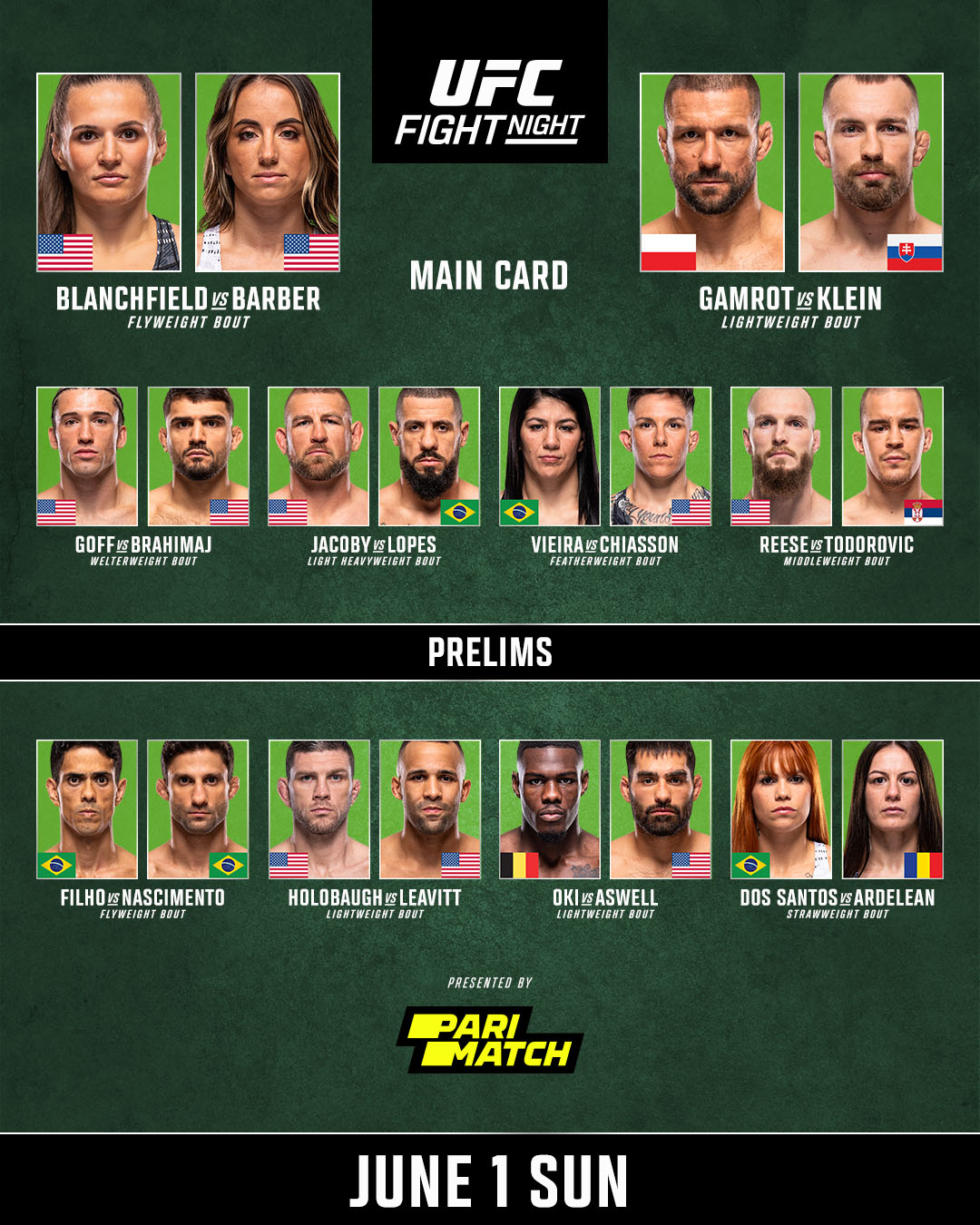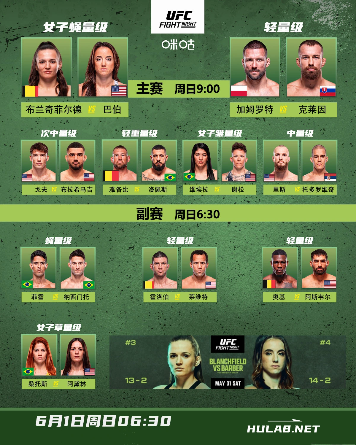 原定由艾琳-布兰奇菲尔德 VS 梅西-巴伯的女子蝇量级头条主赛因为巴伯健康问题而被临时取消。文章源自武享吧-https://hula8.net/ufc/ufc-fight-night/75650.html
